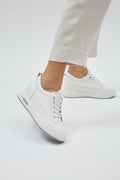 Elevate your casual look with the sleek and versatile Lydie White Sneakers. Perfectly blending minimal design with superior comfort, these sneakers are crafted from high-quality materials for durability and long-lasting wear. The cushioned insole and breathable lining provide all-day comfort, making them ideal for walking, commuting, or weekend outings.